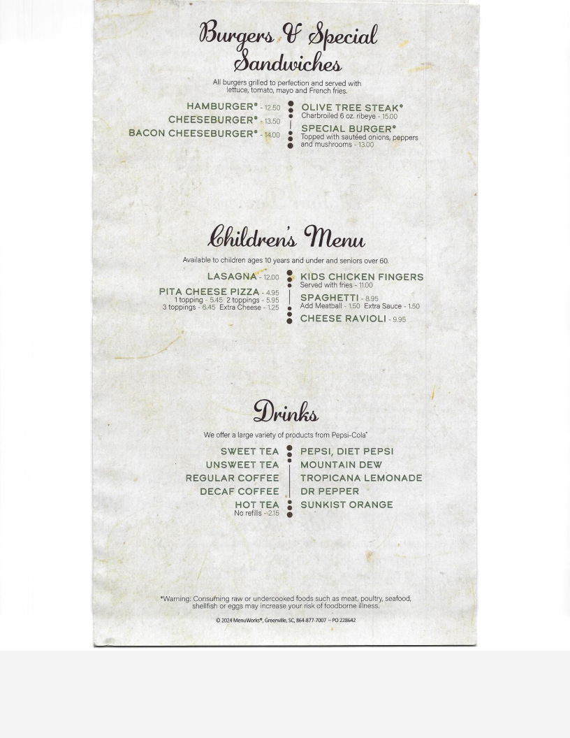 If you're craving delicious pizza and grilled dishes that hit the spot every time, look no further than Olive Tree Pizza & Grill Menu. Nestled in the heart of Mauldin, SC, this cozy spot is a go-to for a mouthwatering variety of pizzas, from classic favorites to creative new combos. The grill menu brings its own flair, offering tender, flavorful meats that complement the pizzas perfectly. Whether you're in the mood for a crisp, fresh salad, a hearty pasta, or one of their signature sandwiches, there's something here for everyone. With every dish crafted from quality ingredients, it's easy to see why Olive Tree is a local favorite. Just take a bite, and you'll know you've found your new favorite pizza joint.